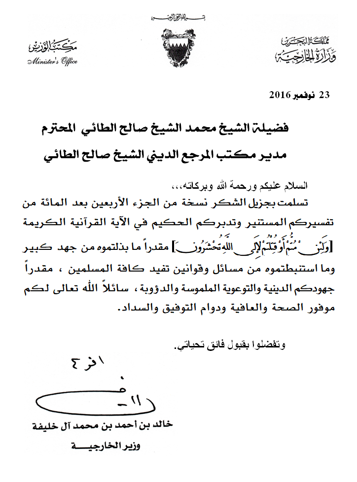 سمو الشيخ خالد بن أحمد آل خليفة/وزير الخارجية مملكة البحرين.