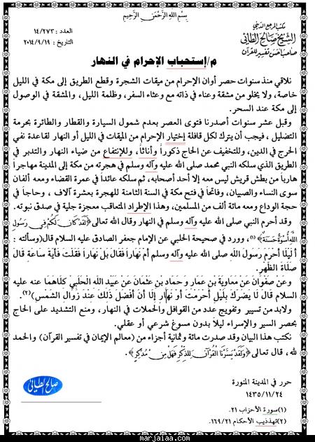 إستحباب الإحرام في النهار البيانات / admin عدد المشاهدات: 16 إستحباب الإحرام في النهار قراءة المزيد »