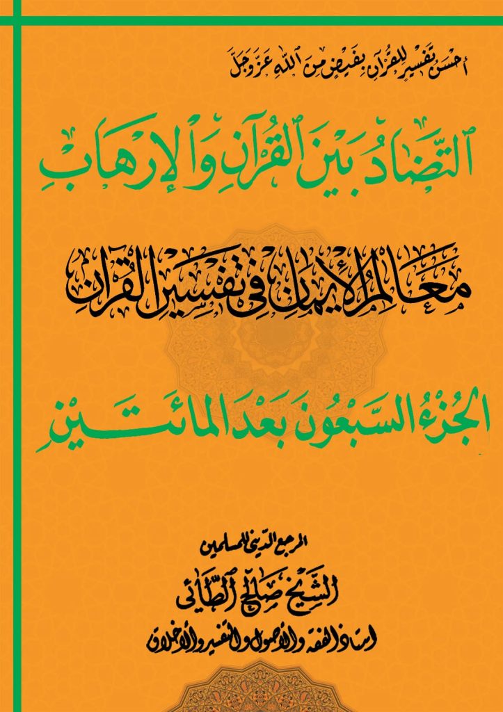 يوميات علمية للمرجعية الإسلامية / المرجع الصالح الطائي تقريظ تفضل به فضيلة العلامة الشيخ علي الجليحاويإمام مسجد الإمام المهدي / الديوانيةبسم الله الرحمن الرحيمسماحة المرجع الديني الكبير آية الله العظمىالشيخ صالح الطائي (دام ظله الوارف)بقلوبٍ يملؤها التقدير والإجلال، نبارك لسماحتكم هذا التوفيق الإلهي المتجدد بطباعة الجزء السبعين بعد المائتين من موسوعتكم التفسيرية المباركة «معالم الإيمان